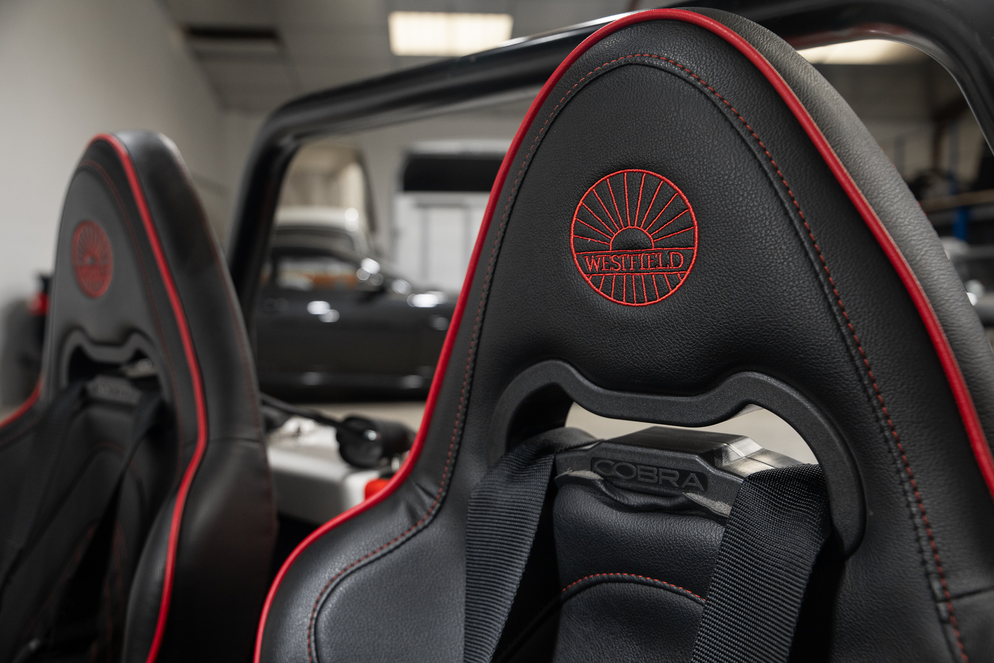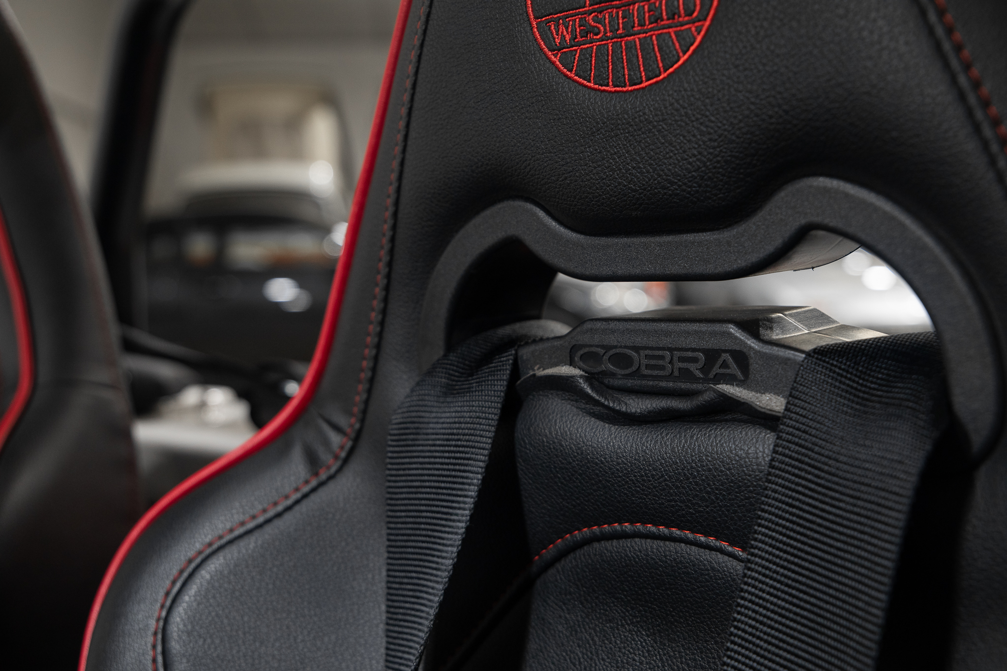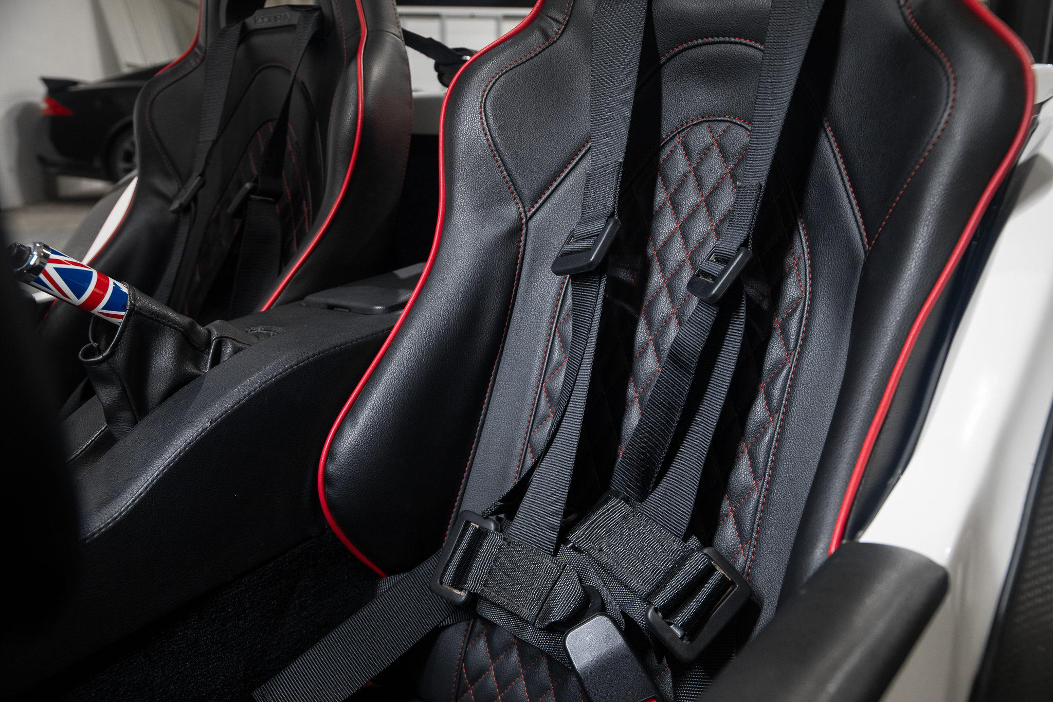 Sièges cobra noir couture rouge