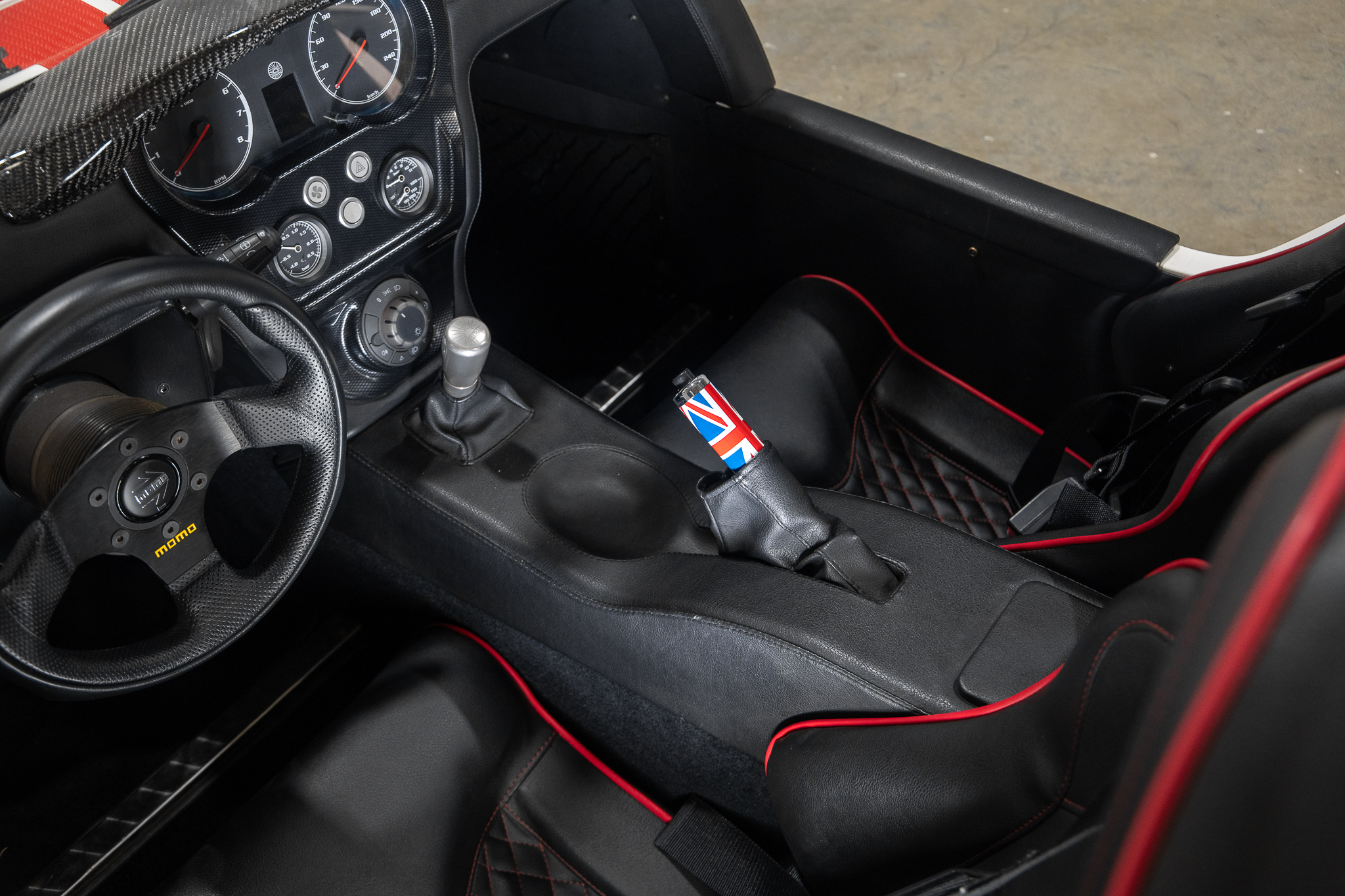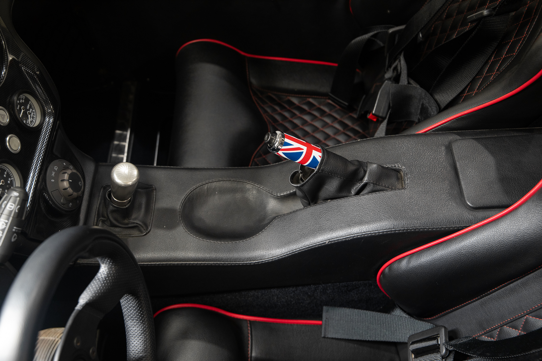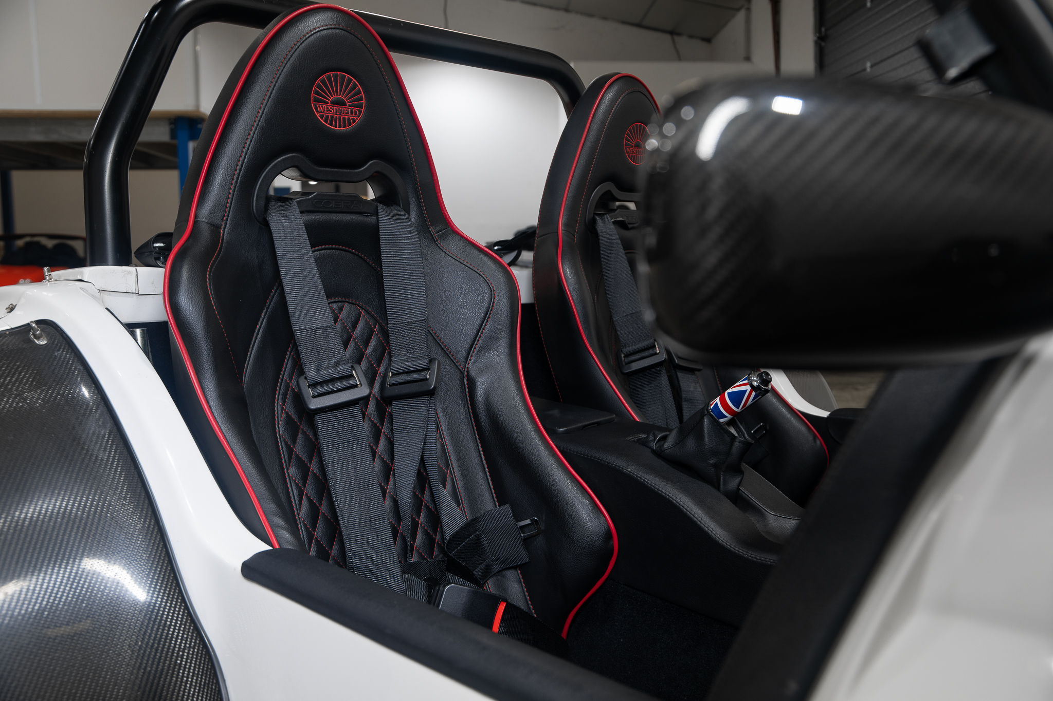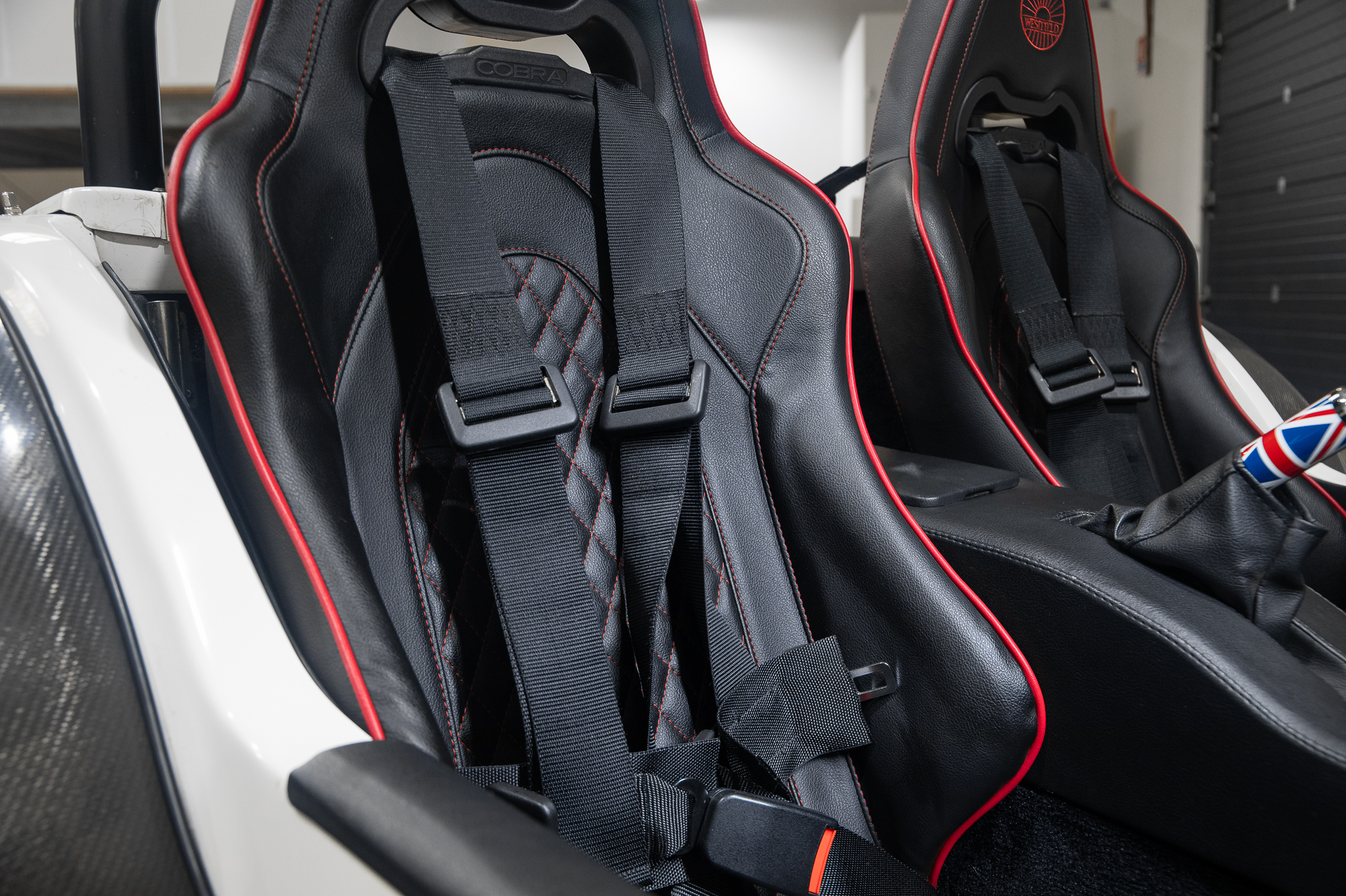 Sièges cobra noir couture rouge