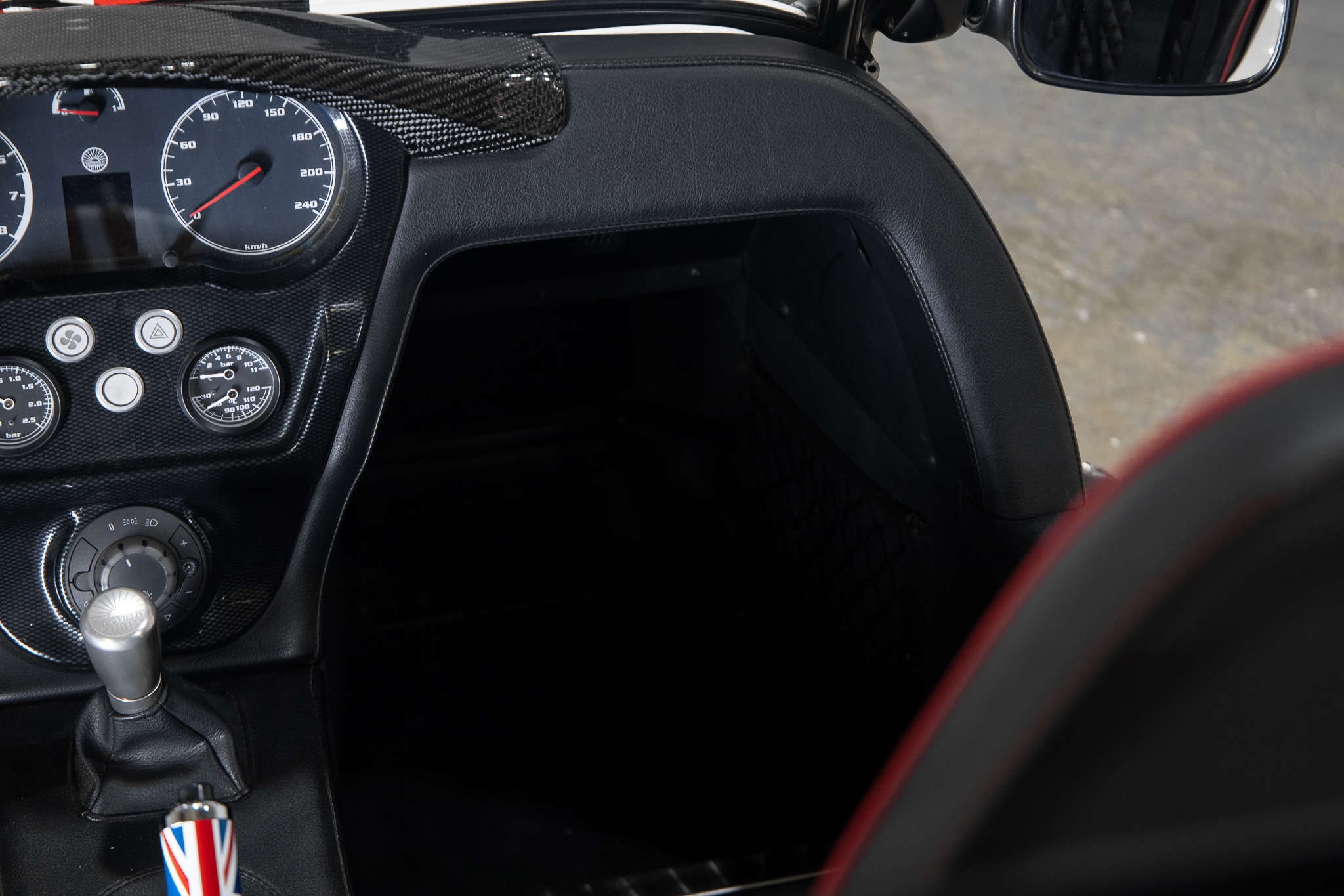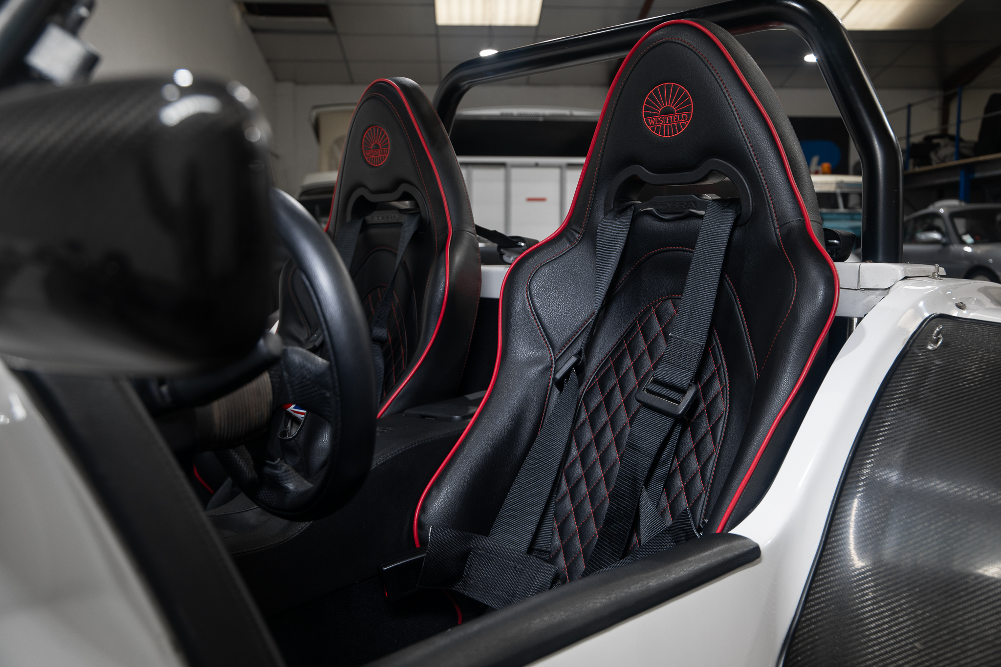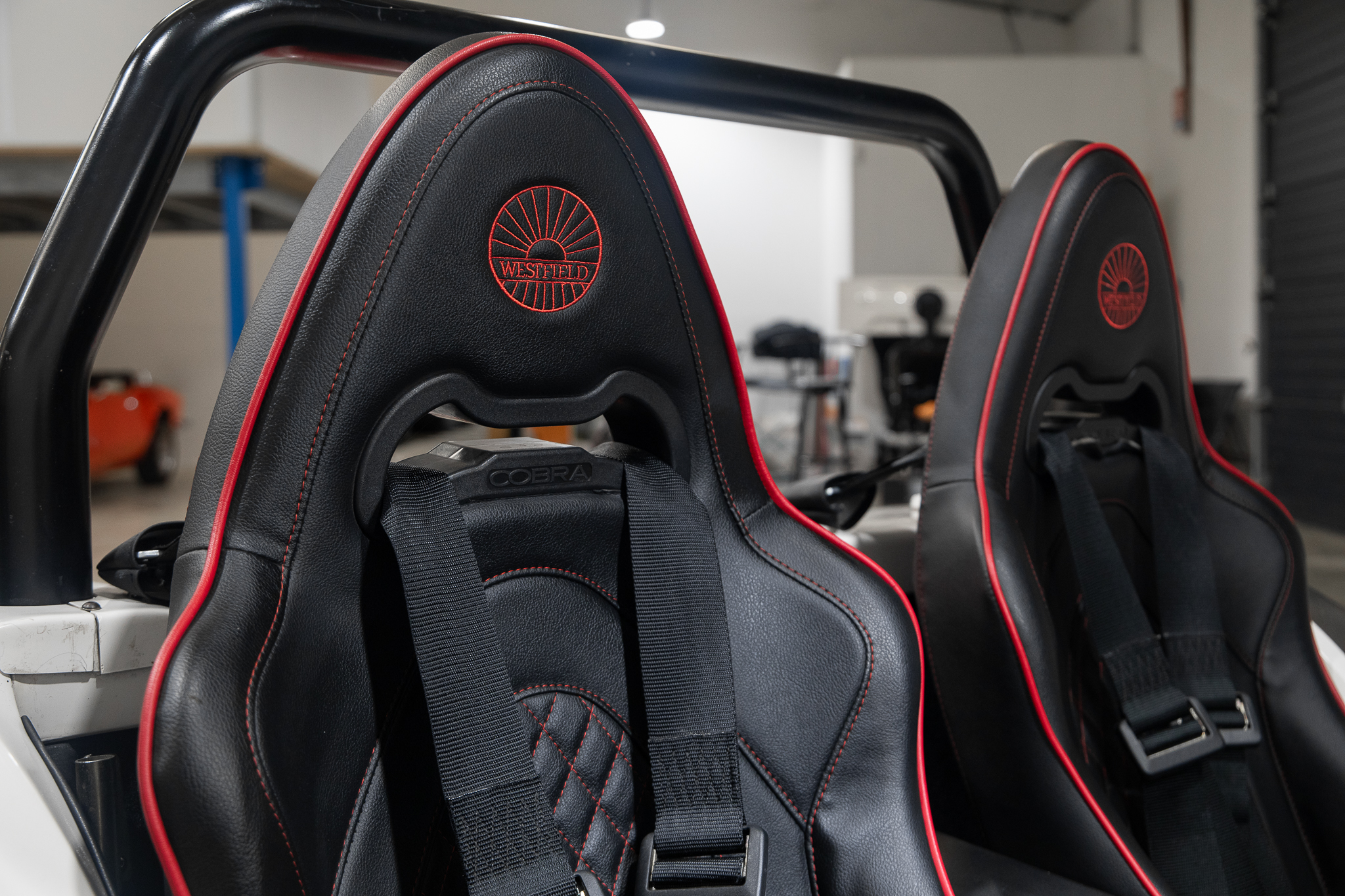 Sièges cobra noir couture rouge